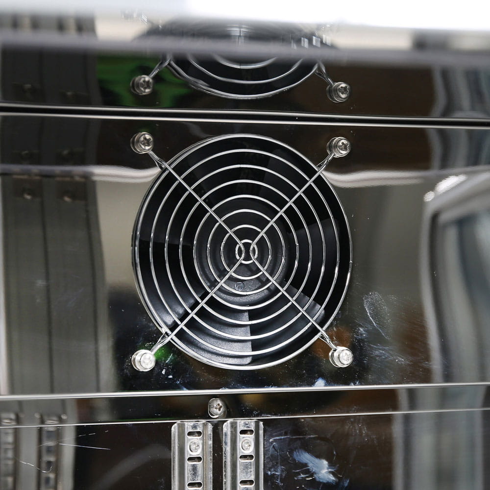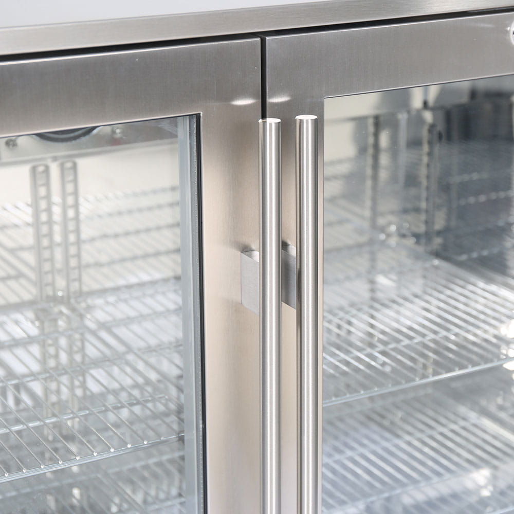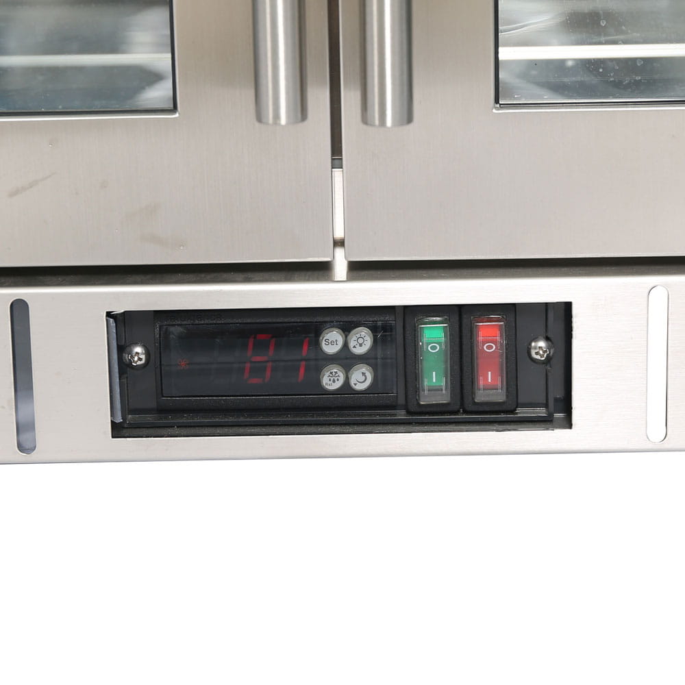 Dzięki wymuszonemu obiegowi powietrza temperatura wewnątrz witryny podblatowej 3-drzwiowej jest równomiernie rozprowadzona, co zapewnia optymalne warunki przechowywania. Elektroniczny termostat umożliwia precyzyjne ustawienie temperatury w zakresie od 0°C do 10°C, a regulowane nóżki ułatwiają dostosowanie urządzenia do różnych powierzchni.