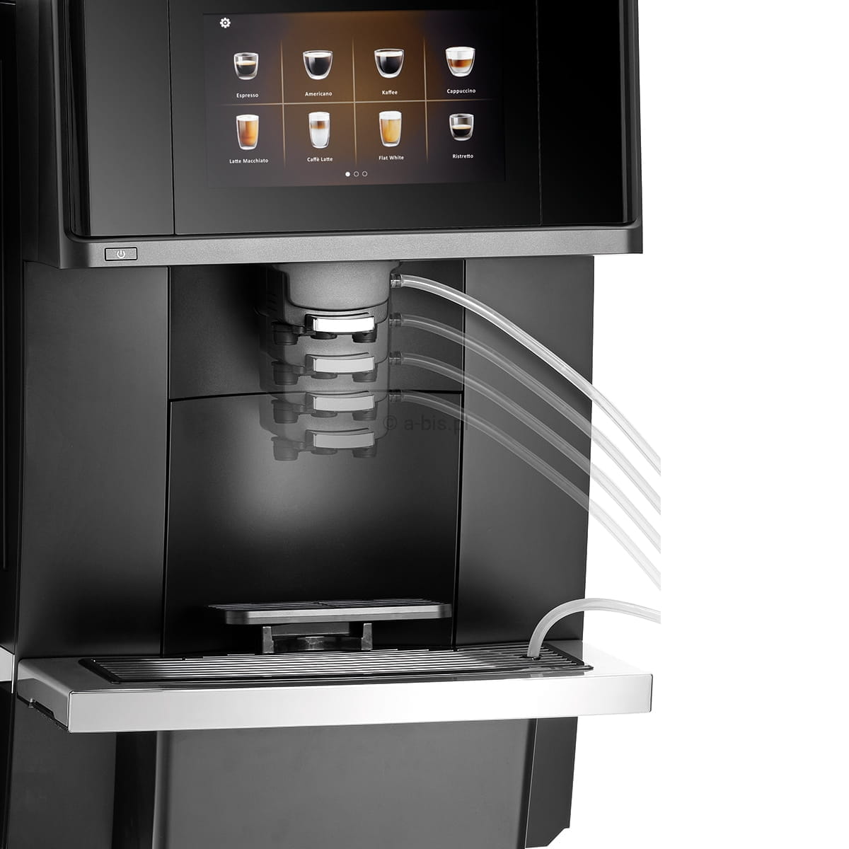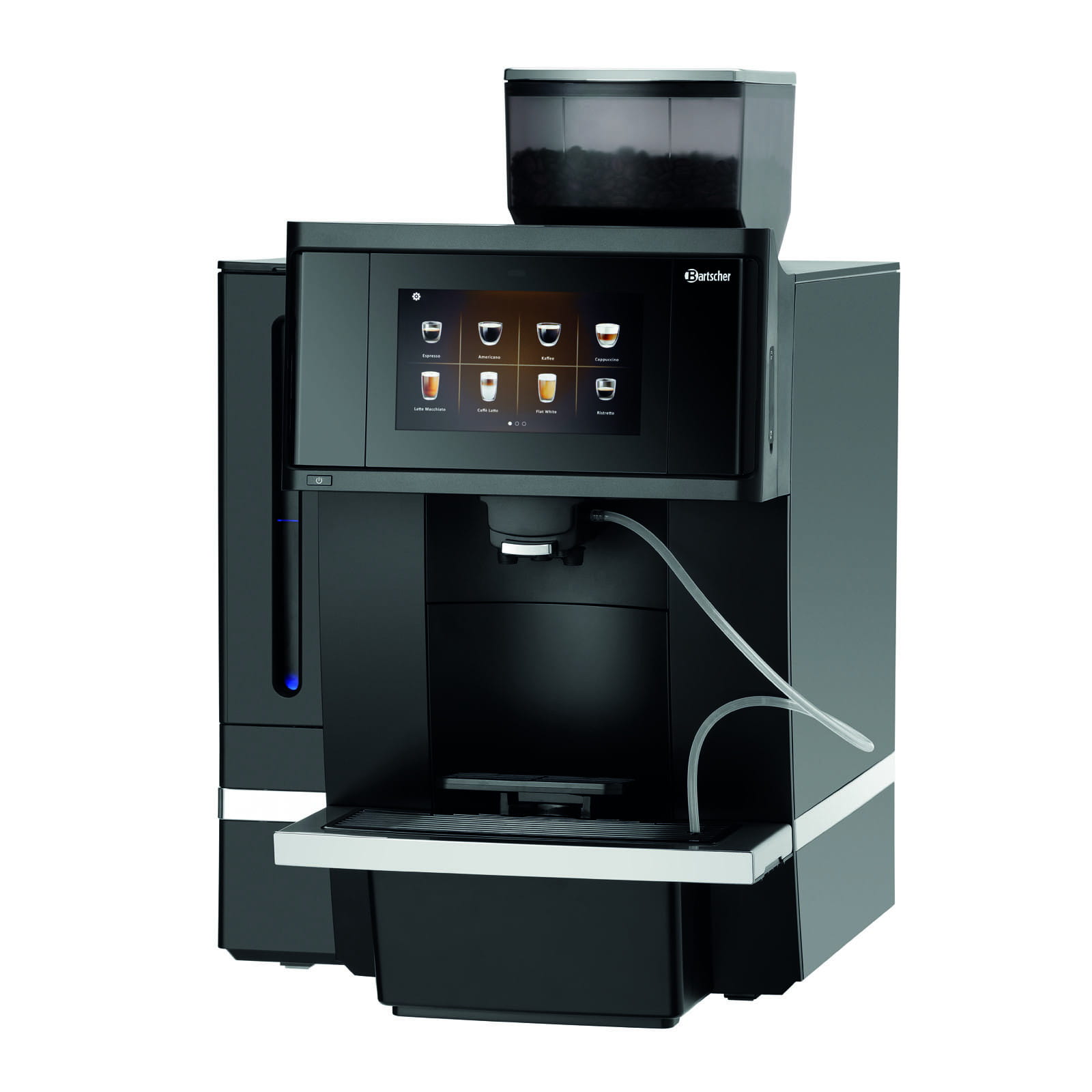 Niezwykle praktycznym aspektem tego ekspresu jest stałe przyłącze do wody. Dzięki temu użytkownik nie musi martwić się o regularne napełnianie zbiornika wodą, co jest szczególnie wygodne w przypadku użytkowania w miejscach o dużym natężeniu ruchu. Jednak to nie tylko praktyczność wyróżnia ekspres do kawiarni Bartscher KV1 Comfort. Urzekający jest również jego estetyczny design. 7-calowy wyświetlacz. Umożliwia on dostosowanie wyświetlanych informacji, jak i dodaje estetyki, nadając ekspresowi nowoczesny wygląd. Możliwość zapisywania indywidualnych nagrań wideo na wyświetlaczu daje dodatkowe pole do personalizacji.