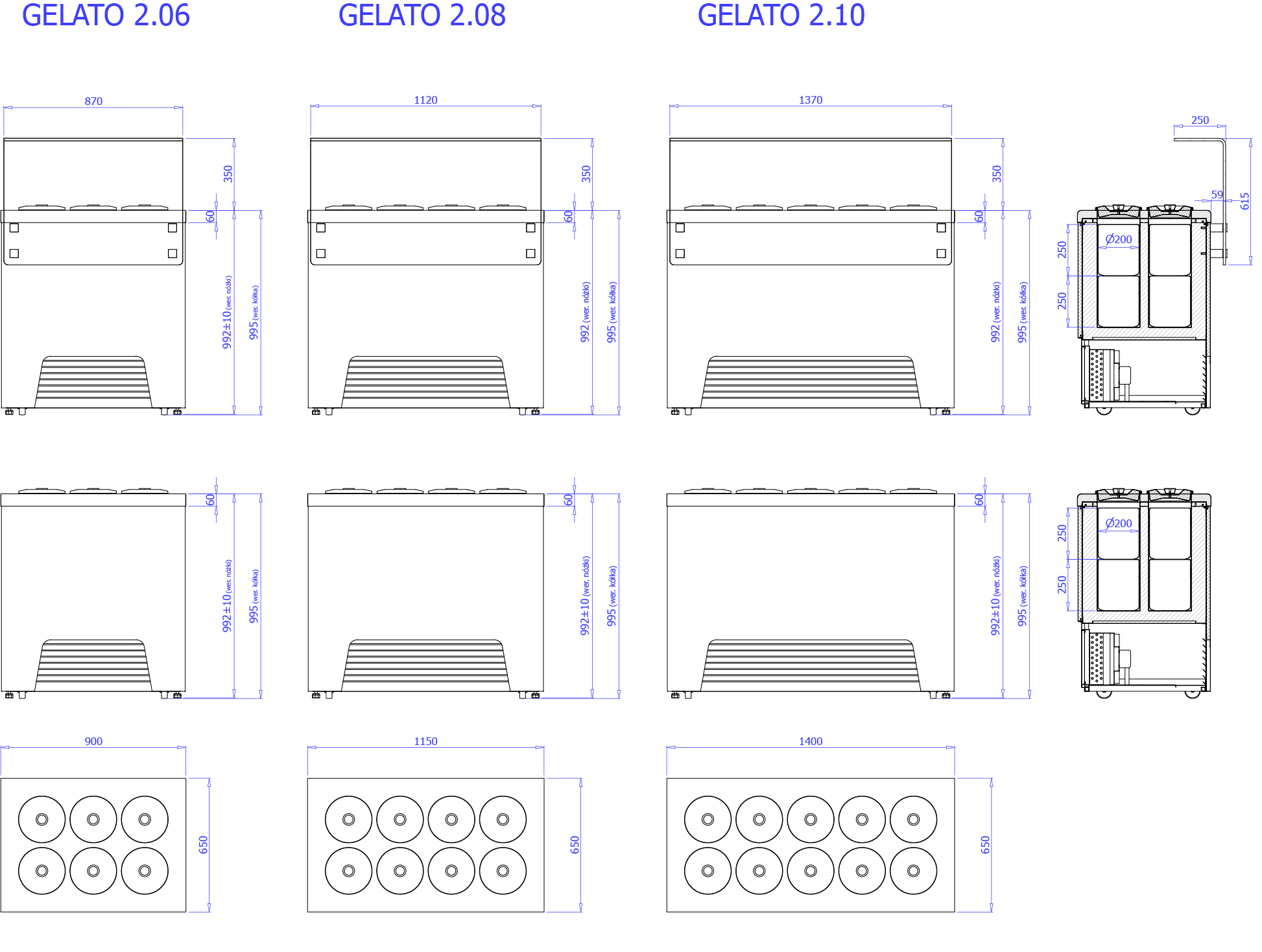 Gelato 2, dzięki ciekawej i atrakcyjnej stylistyce sprawia, że wyróżnia się spośród innych urządzeń, a zarazem nadaje pomieszczeniu innowacyjnego wyglądu. Ponadto sprzęt posiada dodatkową przestrzeń przechowalniczą, gdzie w jednej tubie można pomieścić dwie kuwety (2 kuwety okrągłe ø 200 x 250 7L). Dystrybutor do lodów daje, także możliwość ustawienia dwóch różnych zakresów temperatur, w której część kuwet może pracować w temperaturze innej od pozostałych. Warto również wspomnieć, że, dzięki szczelnie zakrytym kuwetom lody chronione są przed działaniem światła oraz powietrza. Takie rozwiązanie zapobiega negatywnemu wpływowi tych czynników na jakość przechowywanych lodów.