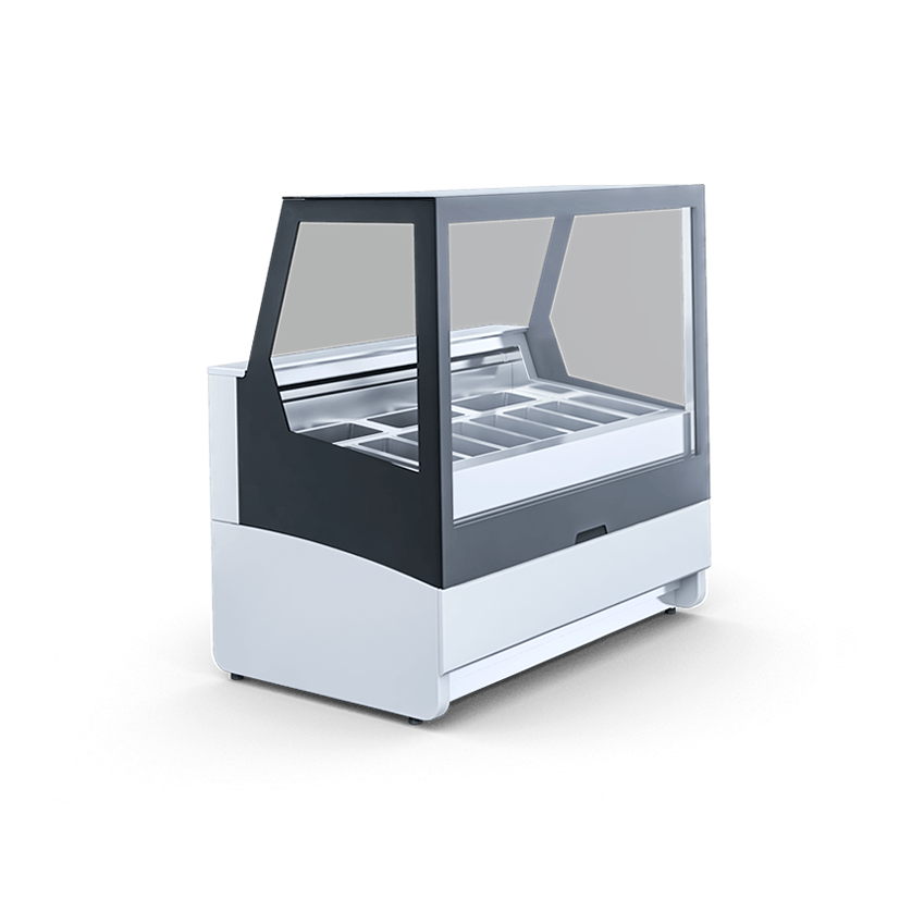Dystrybutor do lodów INNOVA ICE producenta IGLOO to urządzenie, które przeznaczone zostało do przechowywania lodów gałkowych w niskiej temperaturze w zakresie od -10 do -20°C. Takie rozwiązanie sprawia, że lody zachowują swoją świeżość, wygląd i smak na dłuższy czas. Urządzenie zostało wyposażone w wewnętrzny agregat chłodniczy, chłodzenie dynamiczne z automatycznym odszranianiem oraz szyby proste zespolone z czarnym sitodrukiem. Blat roboczy, cokół frontowy i przestrzeń ekspozycyjna w konserwatorze do lodów Igloo wykonane zostały z blachy nierdzewnej, co zapewnia trwałość na uszkodzenia oraz łatwość w zachowaniu czystości.