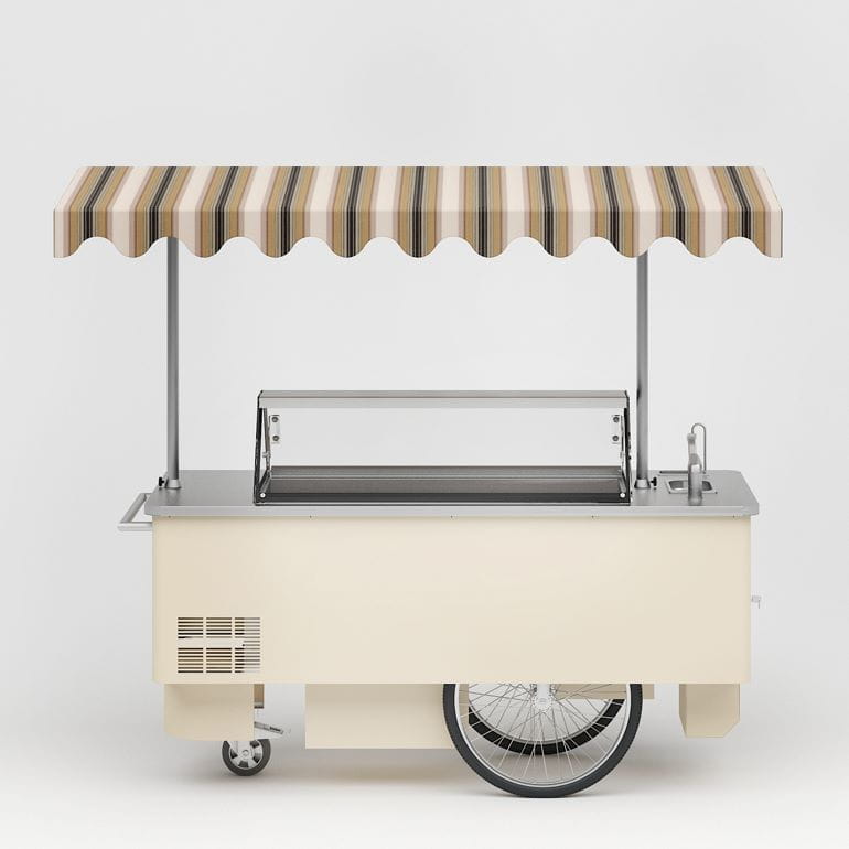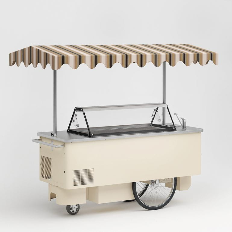 Konserwator do lodów RIKSHA producenta JUKA to urządzenie wyposażone w agregat chłodniczy oraz chłodzenie grawitacyjne. Ponadto dystrybutor o wymiarach 2250 x 1200 x 2100 mm posiada miejsce na 7 pojemników na lody ø 200 x 240 mm. Dodatkowo dystrybutor do lodów Riksha JUKA posiada blat nierdzewny, oświetlenie LED oraz obudowę malowaną proszkowo na dowolny kolor wybrany przez Państwa z palety RAL JUKA umieszczonej w galerii zdjęć. W tym celu prosimy o kontakt z naszym działem handlowym.