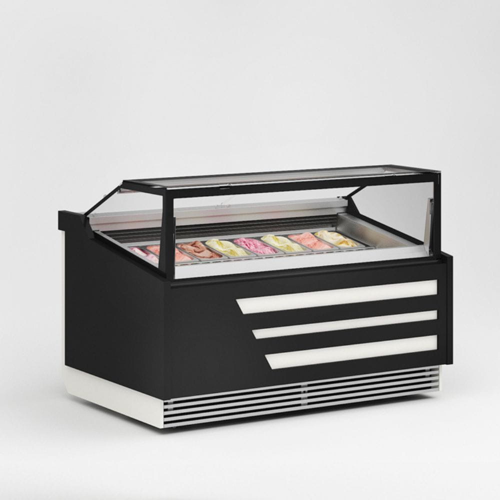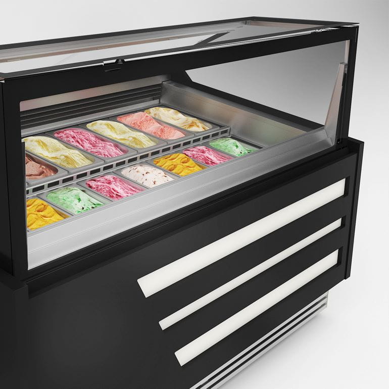 Konserwator do lodów PARADISO producenta JUKA to urządzenie z szybą prostą, które zostało wyposażone w agregat chłodniczy, chłodzenie wymuszone oraz automatyczne odszranianie i odparowanie skroplin. Ponadto urządzenie występuje w długości 1225 (12 szt. pojemników), 1725 mm (18 szt. pojemników) oraz 2385 mm (24 szt. pojemników). Podczas konfiguracji prosimy o wybór odpowiedniej długości. Dodatkowo dystrybutor do lodów JUKA posiada wykończenie z blachy nierdzewnej, oświetlenie LED oraz obudowę drewnianą, która może zostać pomalowana na dowolny kolor wybrany przez Państwa z palety RAL JUKA umieszczonej w galerii zdjęć. W tym celu prosimy o kontakt z naszym działem handlowym.