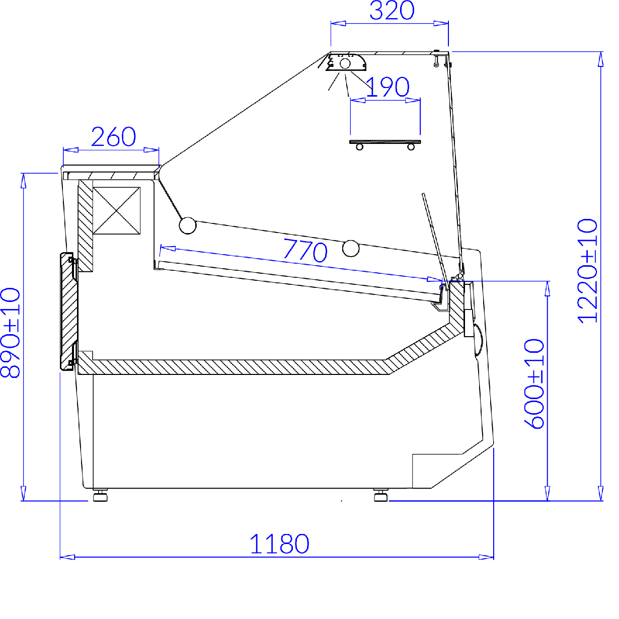 - lampa ze świetlówką LED (barwa do wyboru– biała, cukiernicza lub mięsna „deep pink”)