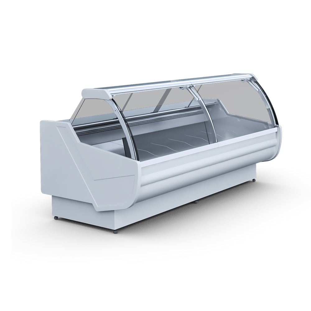 Lada chłodnicza SANTIAGO producenta Igloo to urządzenie z szybą czołową giętą, które wyróżnia się przede wszystkim dużą ekspozycją. Sprzęt ma 12 miesięczną gwarancję oraz został wyposażony w chłodzenie grawitacyjne (nie wysusza produktów), wewnętrzny agregat chłodniczy, system teleskopowego podnoszenia szyby frontowej, blat roboczy granitowy szary o grubości 2 cm automatyczne oszranianie i elektroniczny termostat, który może zostać wyposażony w moduł do sygnalizacji zbyt niskiej lub zbyt wysokiej temperatury wewnątrz urządzenia (za dodatkową opłatą). Poza nowoczesnymi technologiami zastosowanymi w ladzie urządzenie cieszy się nowoczesnym i eleganckim designem. Podczas konfiguracji lady sklepowej SANTIAGO prosimy o wybór odpowiedniej długości, rodzaju oświetlenia LED, kolor boków, frontu, odbojników oraz profili aluminiowych.