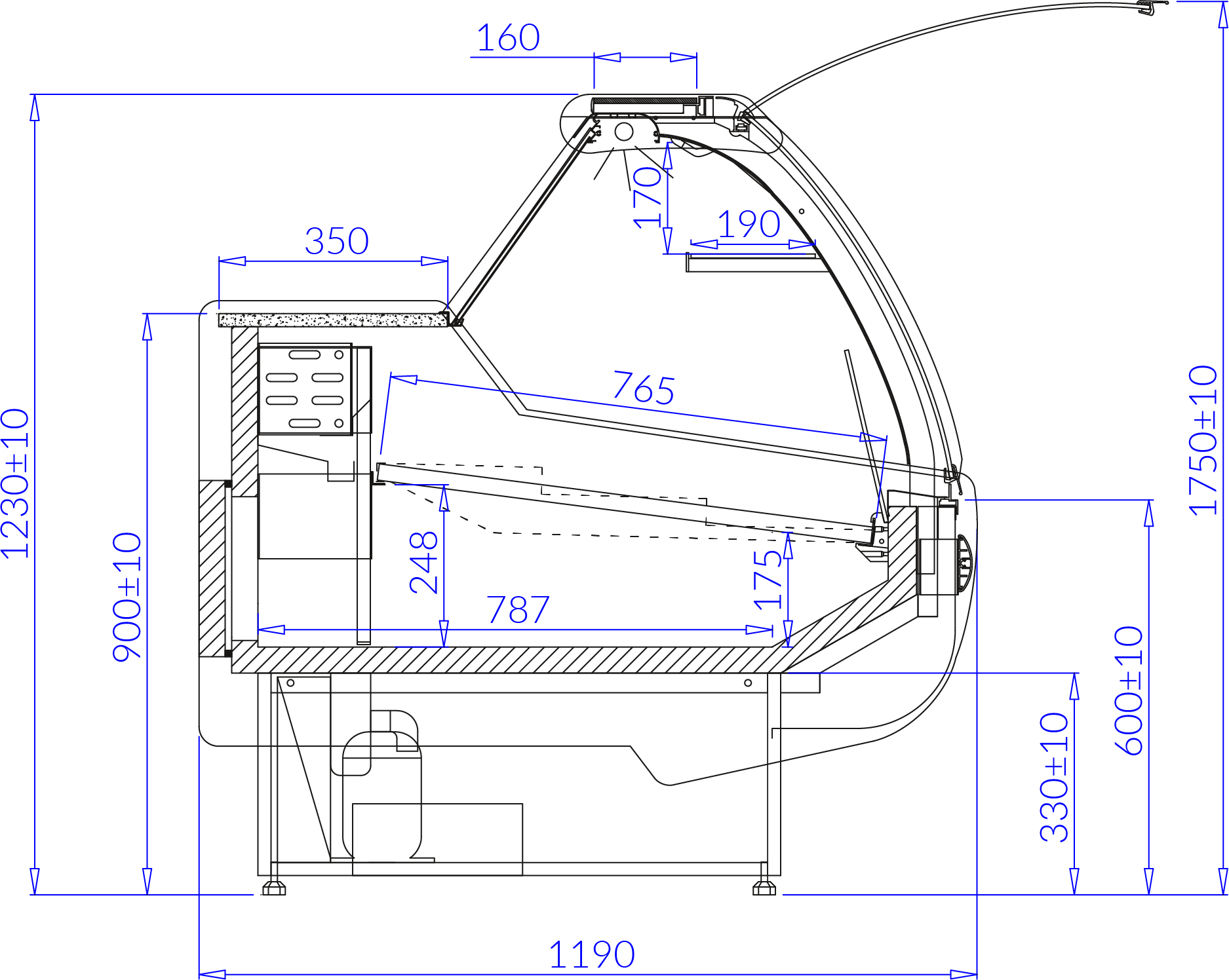 - lampa ze świetlówką LED (barwa do wyboru– biała, cukiernicza lub mięsna)