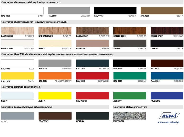 - podstawa i front - możliwość wyboru koloru z Mawi RAL