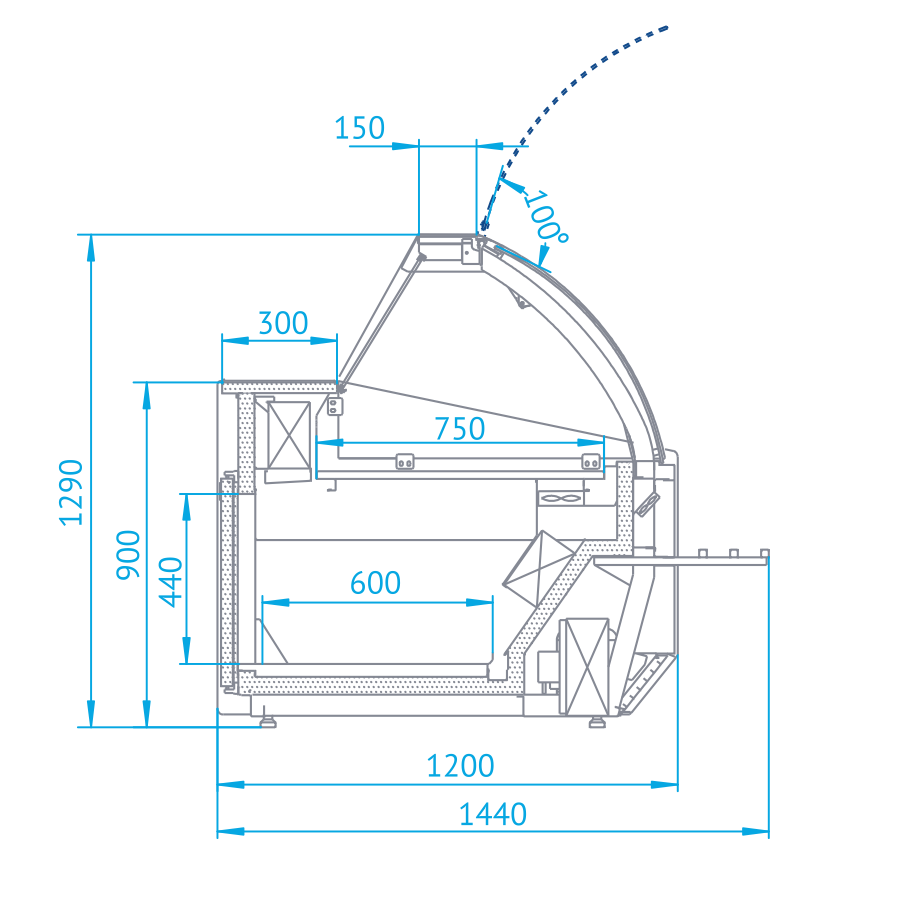 - Wysokość lady: 1290 mm