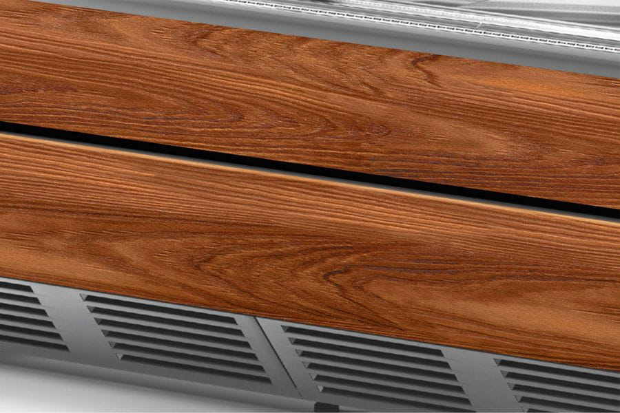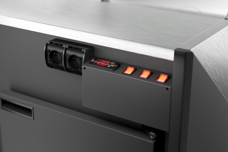 Dodatkowo lada chłodnicza RAPA posiada powierzchnię ekspozycyjną o głębokości 75 cm, która gwarantuje doskonałą ekspozycję towarów. Lada została skonstruowana w taki sposób, aby dać możliwość łatwej wymiany paneli frontowych, dzięki czemu wygląd sprzętu chłodniczego można dostosować bez problemu do każdego rodzaju wnętrza. Ponadto zastosowanie przez producenta systemu osuszania szyb sprawia, że urządzenie pracuje w najwyższej jakości bez względu na to jaka jest wilgotność powietrza w dany dzień. Warto również wspomnieć, że urządzenie w swoim standardowym wyposażeniu posiada także system automatycznego odparowania skroplin, zasłony nocne, oświetlenie LED dostosowane do przechowywanych produktów (mięsne/nabiałowe do wyboru) oraz podwójne gniazdo elektryczne od strony obsługi z prawej strony urządzenia.