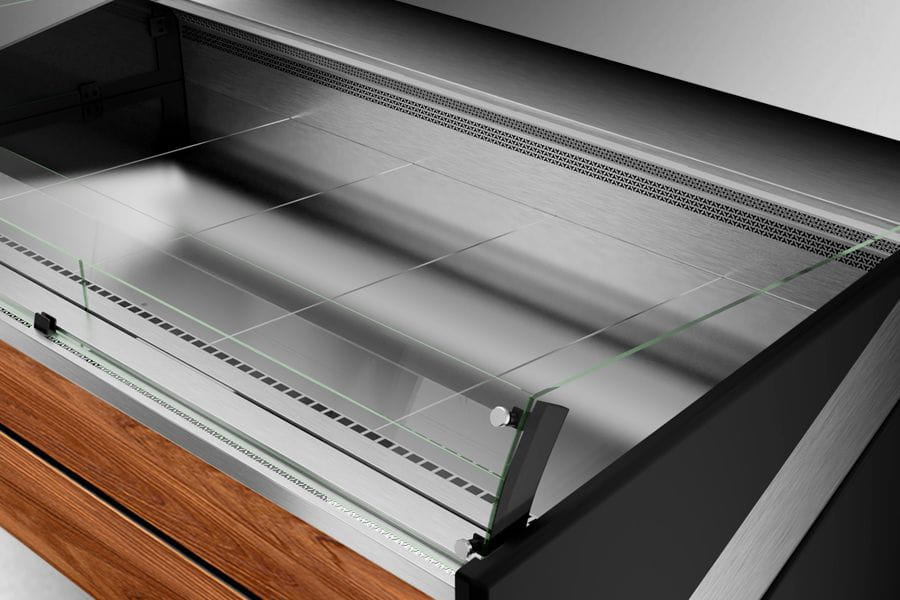 - Dzielone, wyjmowane dno ekspozycji ze stali nierdzewnej „lustro”