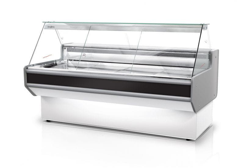 - Oświetlenie LED dopasowane do produktów (mięsna lub nabiałowa)
