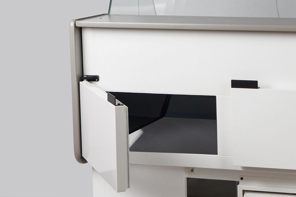 - Dzielone, wyjmowane dno ekspozycji ze stali nierdzewnej „lustro”