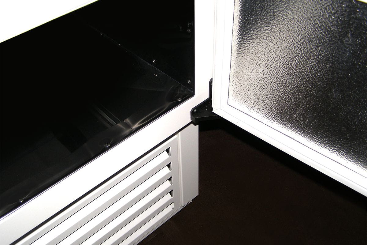 - Bezprogowe dno przechowalnika ze stali nierdzewnej.