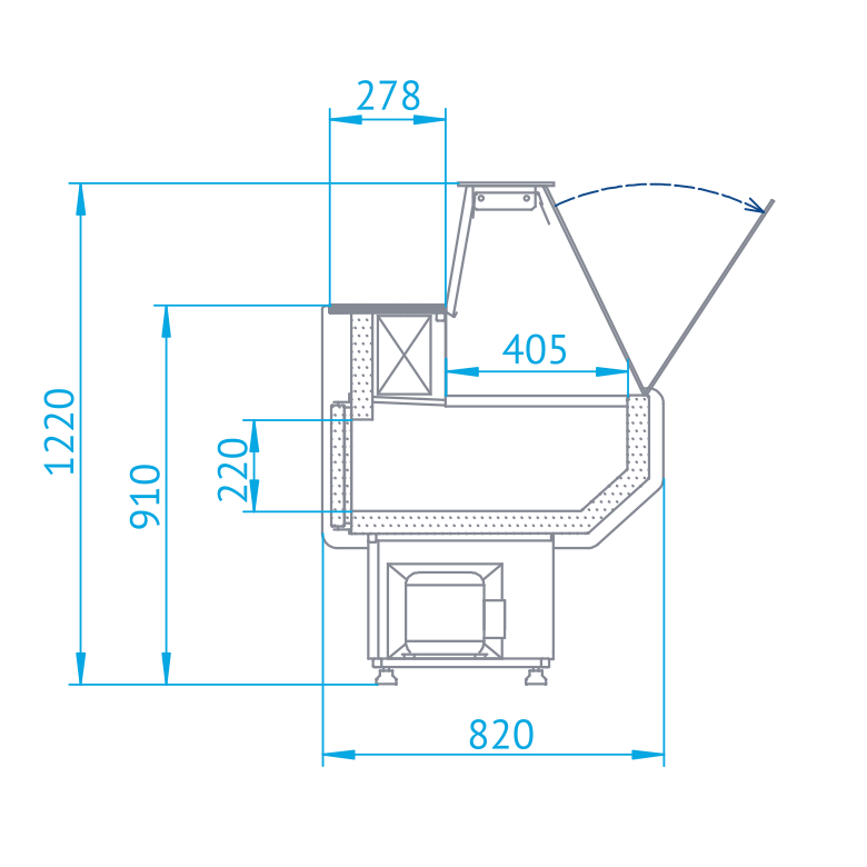 - Głębokość zewnętrzna lady: 820 mm