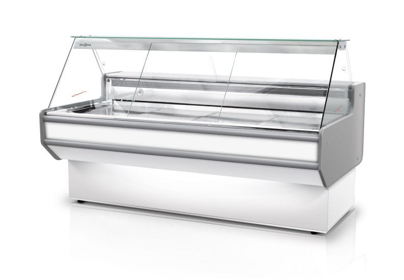 - Oświetlenie LED dopasowane do produktów (mięsna lub nabiałowa)