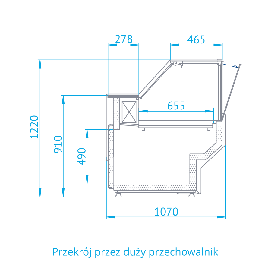 - Drzwi przechowalnika w kolorze korpusu z uszczelką magnetyczną.