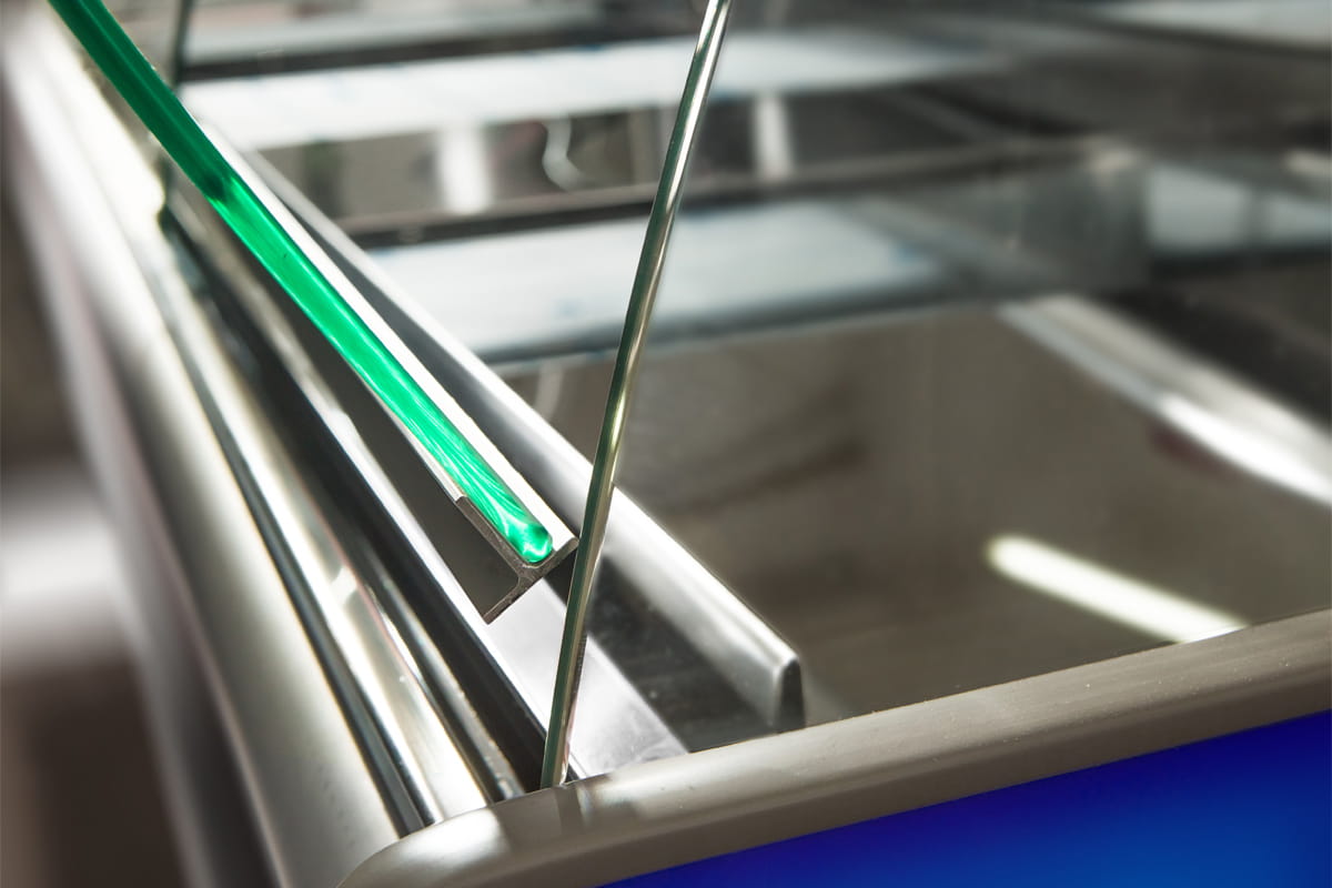 - Dzielone, wyjmowane dno ekspozycji ze stali nierdzewnej „lustro”