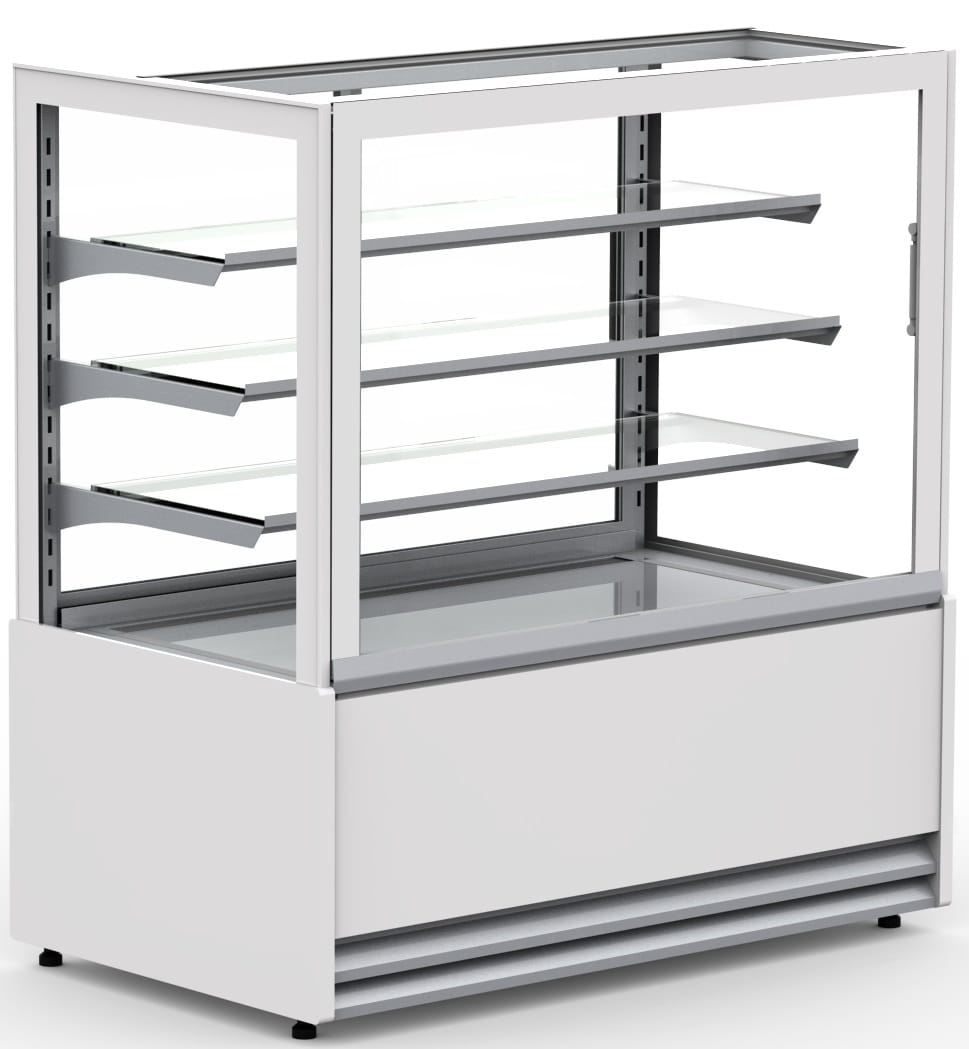 Lada cukiernicza Ellada producenta Cebea Bochnia to urządzenie, które zostało przeznaczone do eksponowania wyrobów cukierniczych, takich jak ciasta, torty, desery itp. Sprzęt ten umożliwia przechowywanie produktów w stałej obniżonej temperaturze w zakresie od +5°C do +15°C, dzięki czemu wyroby cukiernicze zachowują niemal idealny stan. Ellada nie tylko cieszy się solidnym wykończeniem, ale również efektywnym designem, dzięki czemu podnosi potencjał sprzedaży, przykuwając uwagę klientów. W standardzie urządzenia jest wbudowany agregat chłodniczy oraz wymuszony obieg powietrza, który równomiernie i bardzo szybko schładza produkty umieszczone w witrynie cukierniczej.