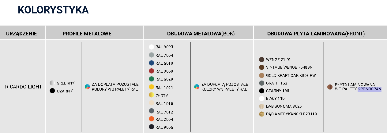 - Dopłata do niestandardowego koloru obudowy wg palety RAL