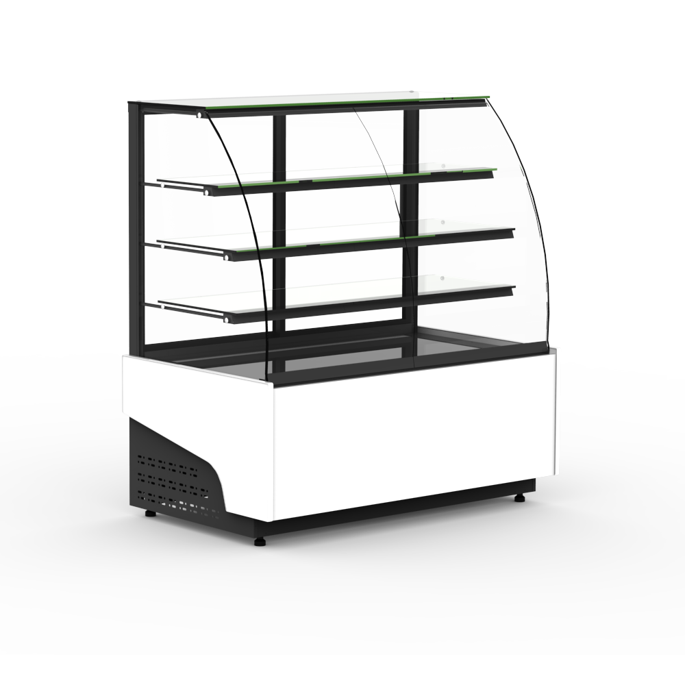 W urządzeniu zastosowano wymuszony obieg powietrza. W prezentowanej ladzie cukierniczej znajdziemy wbudowany agregat. Produkt został także wyposażony w funkcję automatycznego odparowania skroplin. Generuje on temperaturę, której wartość mieści się w zakresie od +5°C DO +15°C. Zużycie energii kształtuje się na poziomie 14,1 kWh na dobę.