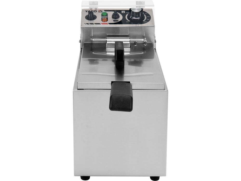 Frytownica jednokomorowa YATO YG-04609 to urządzenie idealne do smażenia frytek, mięsa, ryb, krokietów czy warzyw w głębokim tłuszczu. Sprawdzi się w barach, kebabach i innych lokalach typu fast-food. Dzięki pojemności zbiornika na olej wynoszącej 5 litrów (maksymalnie) i precyzyjnemu zakresowi temperatury od 60°C do 200°C, zapewnia bardzo dobre rezultaty smażenia.