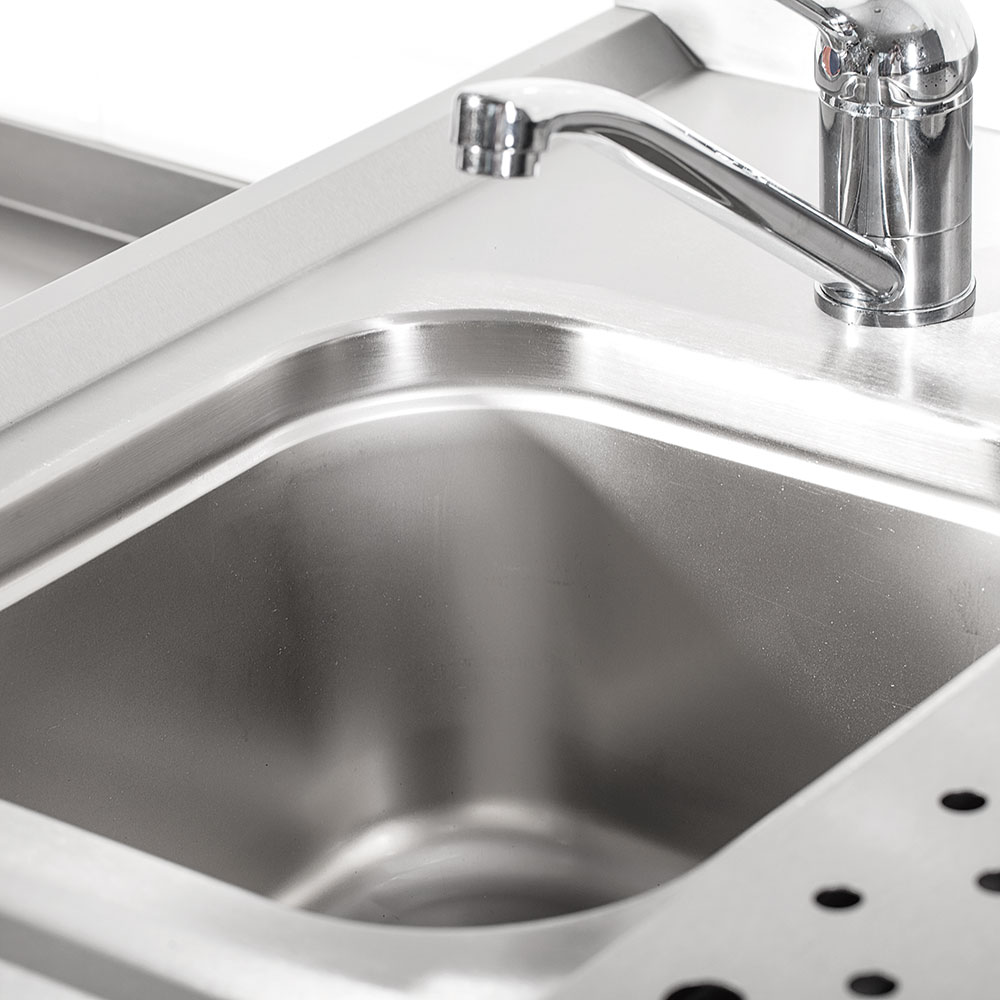 Stół nierdzewny pod ekspres do kawy z ociekaczem i umywalką