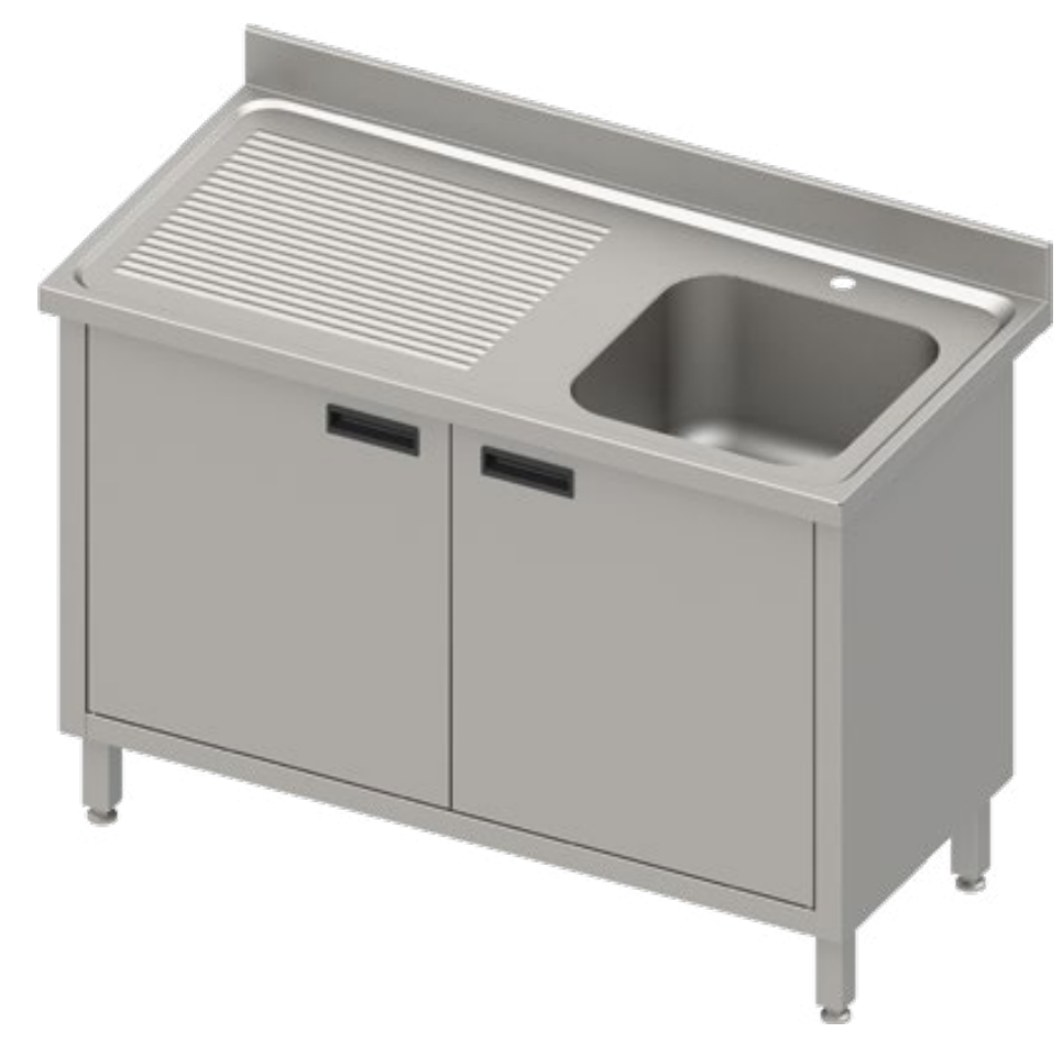 Stół ze zlewem 1-kom.(P),drzwi skrzydłowe 1200x600x850 mm, blat tłoczony,rant puszkowy 100x15x10
