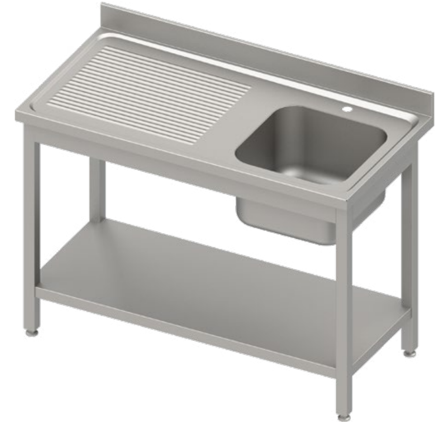 Stół ze zlewem 1-kom.(P),z półką 1100x700x850 mm spawany, blat tłoczony,rant puszkowy 100x15x10