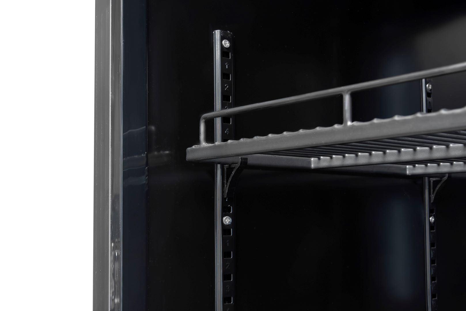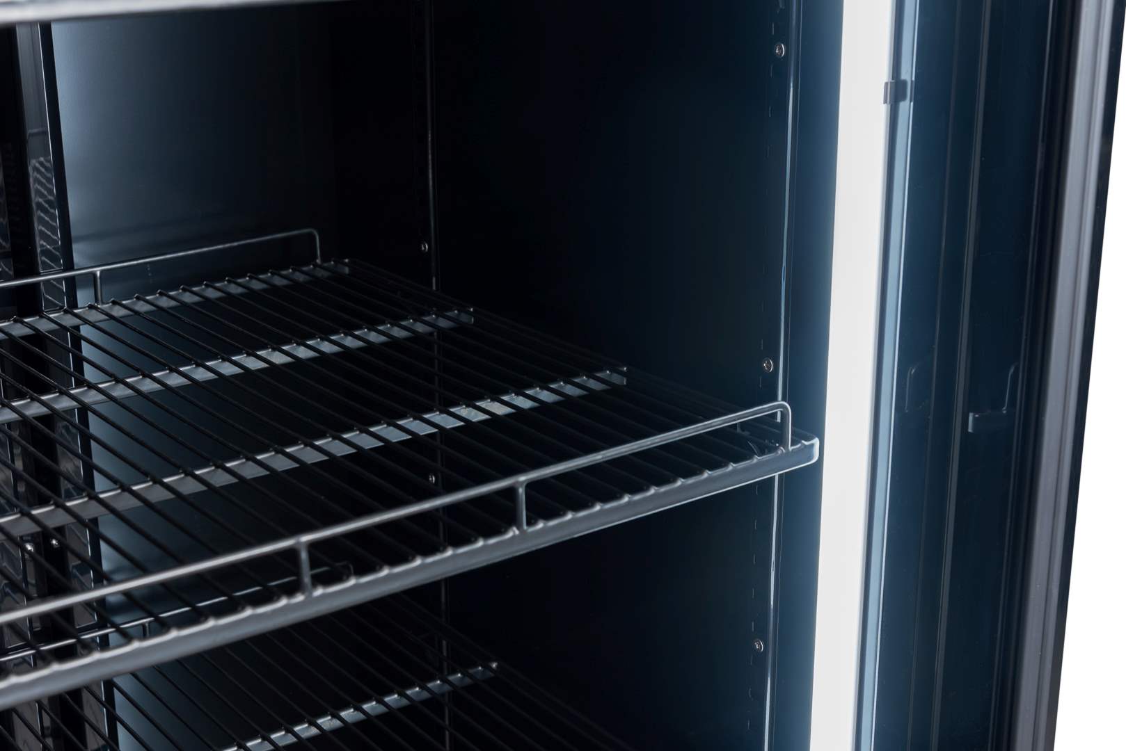 Dynamiczny system chłodzenia zastosowany w oferowanej szafy chłodniczej pomaga utrzymać równomierną temperaturę, dzięki czemu produkty zachowują świeżość niezależnie od ich ułożenia na pięciu regulowanych półkach. Elektroniczny termostat pozwala precyzyjnie ustawić warunki (w zakresie 0–10°C), a automatyczne rozmrażanie i odparowanie skroplin znacznie ułatwiają obsługę i ograniczają potrzebę ręcznej konserwacji. Podwójne, hartowane szyby z zaokrąglonym wykończeniem zapewniają wysoką izolację termiczną, co zmniejsza koszty eksploatacji, a wewnętrzne oświetlenie LED z funkcją zmiany barwy z białej na niebieską podkreśla produkty i pozwala dopasować efekt wizualny do charakteru lokalu.