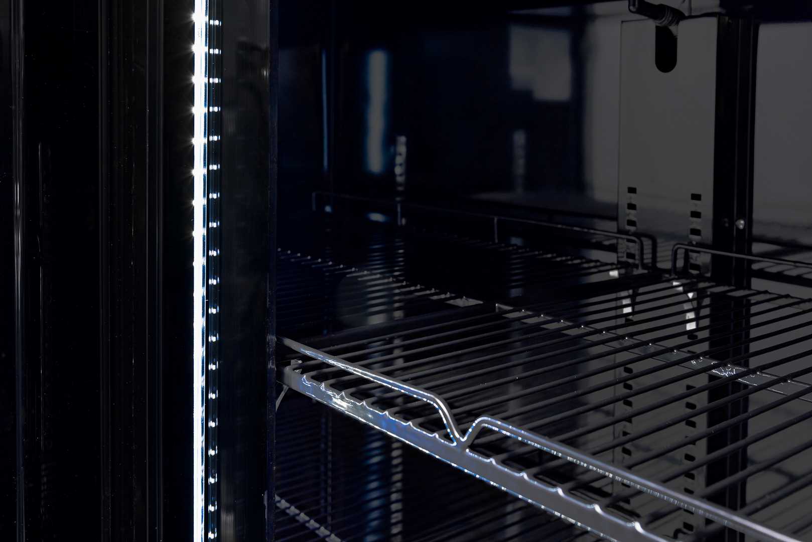 - Podwójna szyba hartowana w drzwiach stanowi doskonałą barierę termiczną, co w połączeniu z energooszczędnym oświetleniem LED pozwala na uzyskanie wysokiej klasy energetycznej B i realne oszczędności w eksploatacji.