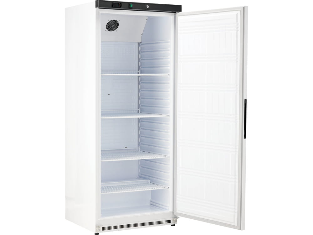 Szafa chłodnicza o pojemności 570 litrów została zbudowana z lakierowanej na biało stali, a jej wnętrze wykonano z odpornego na pęknięcia i odkształcenia materiału ABS, co zapewnia stabilność strukturalną podczas intensywnego użytkowania. Układ chłodzenia z wymuszonym obiegiem utrzymuje jednolity rozkład temperatury w przedziale od –2 do +8°C, a nad całością czuwa elektroniczny sterownik marki Carel, za pomocą którego można regulować parametry pracy. Szafa posiada system automatycznego odszraniania oraz drzwi uchylne wyposażone w zamek i mechanizm samoczynnego domykania, z możliwością zmiany kierunku otwierania. Za stabilne ustawienie odpowiadają dwie regulowane przednie nóżki, a wbudowane z tyłu kółka ułatwiają przesuwanie urządzenia pomimo jego 73-kilogramowej masy.