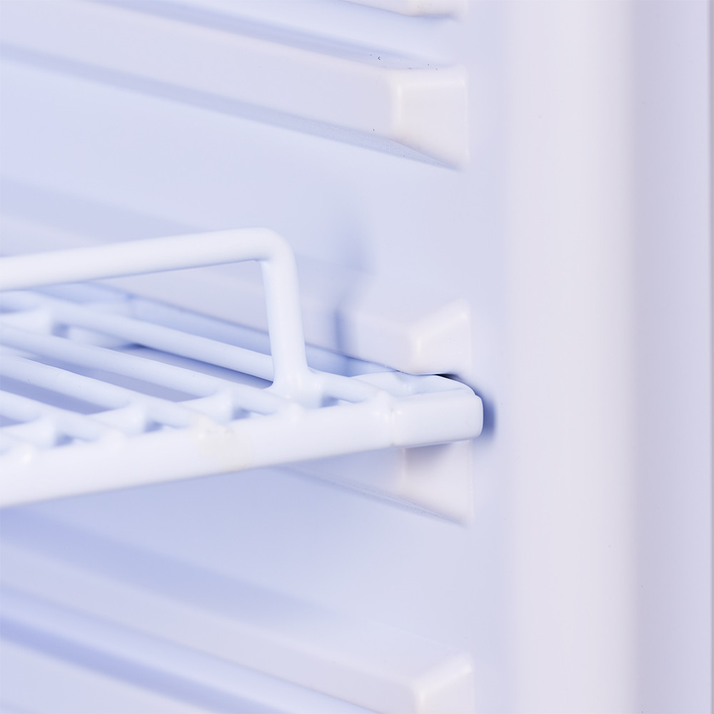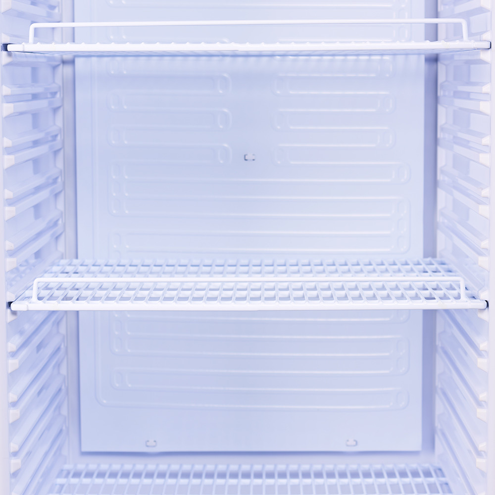 Oferowana szafa chłodnicza z drzwiami przeszklonymi ma bardzo nowoczesną, lekką konstrukcję, która pozwala na łatwy transport oraz montaż w dowolnym miejscu. Zastosowana do produkcji szafy blacha malowana proszkowo gwarantuje jej trwałość oraz odporność na uszkodzenia. Przeszklone drzwi są bardzo wygodne w użyciu i przystosowane do intensywnej eksploatacji (np. w warunkach sklepowych). Dzięki nim istnieje możliwość efektownej prezentacji produktów spożywczych w lokalach handlowych. Ponadto wymiary półek (505x365 mm) oraz możliwość dostosowania odległości między półkami) sprawiają, że w szafie mogą być przechowywane różnego rodzaju produkty spożywcze.