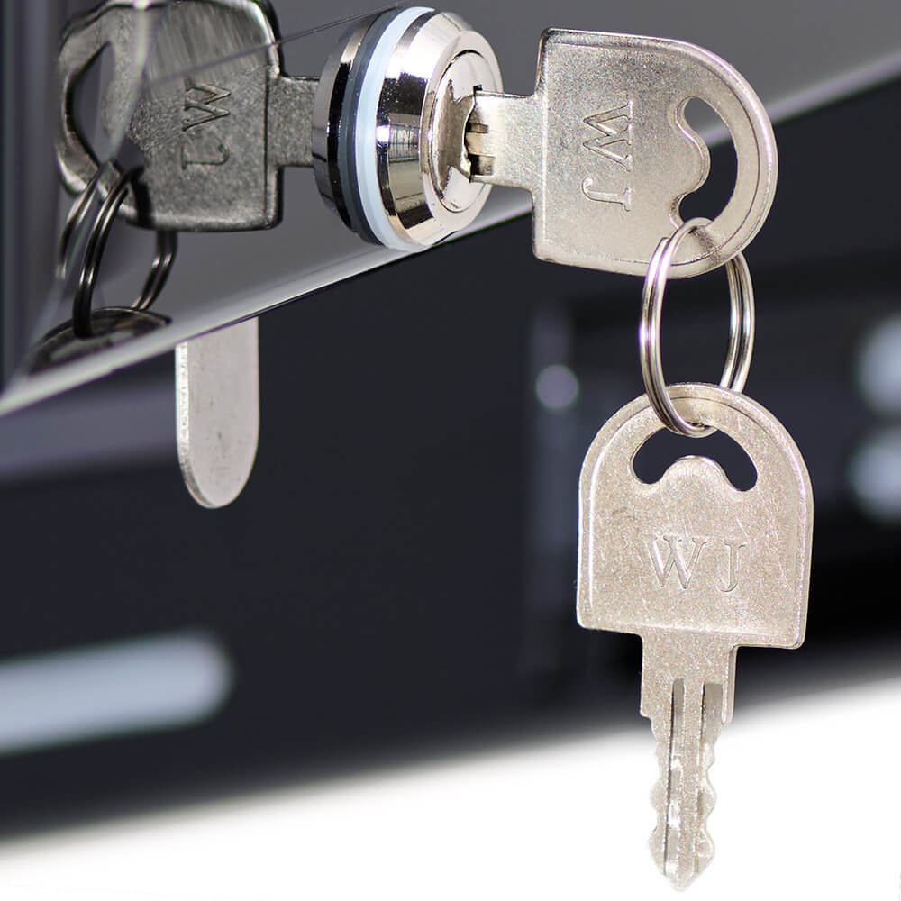 - drzwi przeszklone z zamkiem na klucz, podwójna bezpieczna szyba