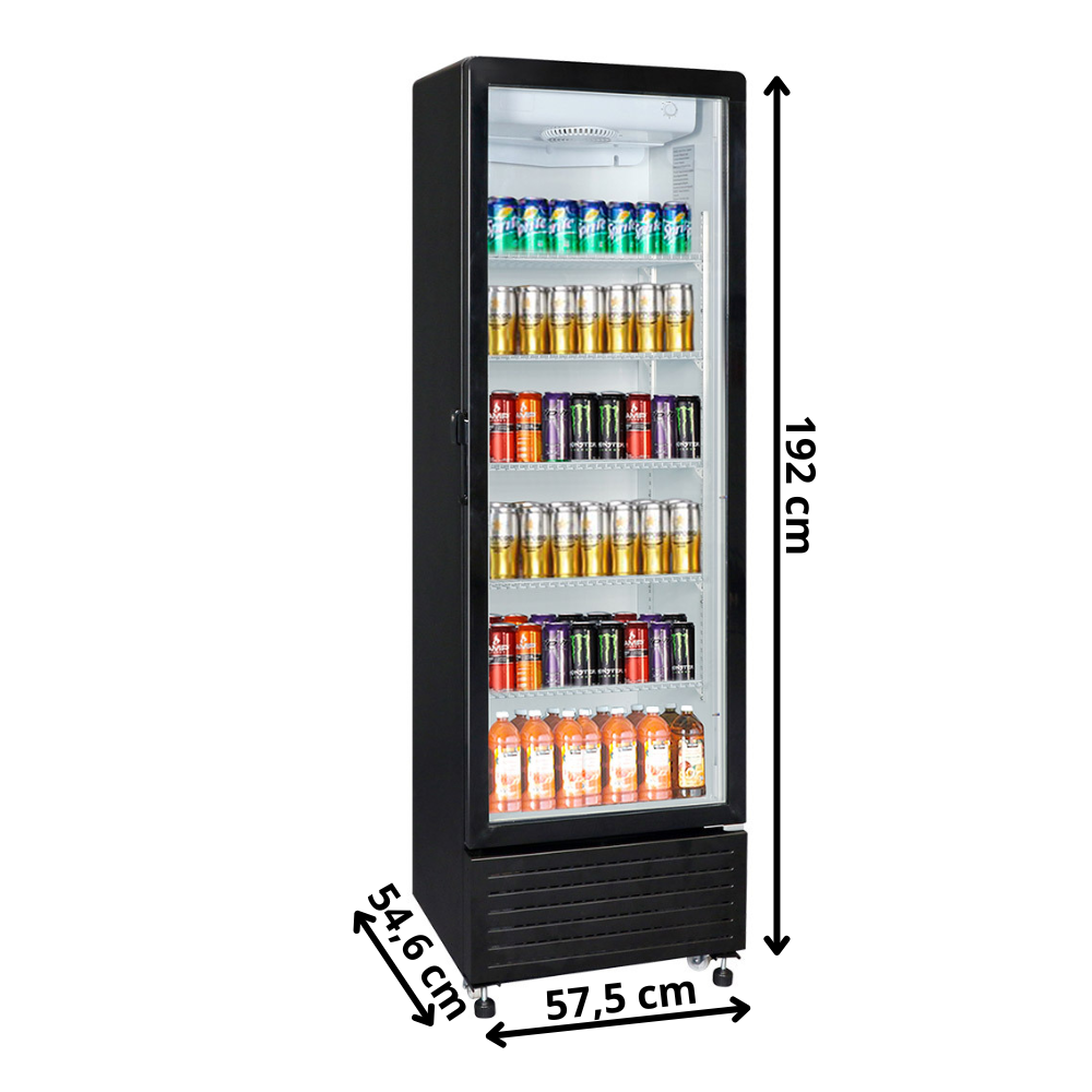 Model o wysokości 1920 mm, długości 575 mm i głębokości 546 mm oferuje pojemność 347 litrów netto, co czyni go praktycznym rozwiązaniem do przechowywania szerokiego asortymentu produktów spożywczych. Drzwi wykonano z hartowanego szkła, co zwiększa bezpieczeństwo i trwałość podczas intensywnego użytkowania. Zamek oraz funkcja samodomykania ograniczają straty energii i dają pewność, że drzwi zawsze pozostaną szczelnie zamknięte. Dzięki wymuszonemu obiegowi powietrza, chłód rozprowadzany jest równomiernie po całej komorze, a produkty utrzymują stabilną temperaturę niezależnie od ich rozmieszczenia. Mechaniczny sterownik umożliwia prostą i precyzyjną regulację, co pozwala dostosować warunki do specyfiki przechowywanych artykułów – od napojów po świeże składniki. Urządzenie pracuje w zakresie od 0°C do +10°C, zapewniając optymalne środowisko dla większości produktów wymagających chłodzenia.