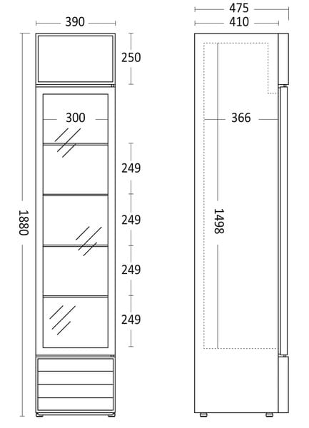 - Wymiary wewnętrzne (WxDxH): 300x366x1498 mm
