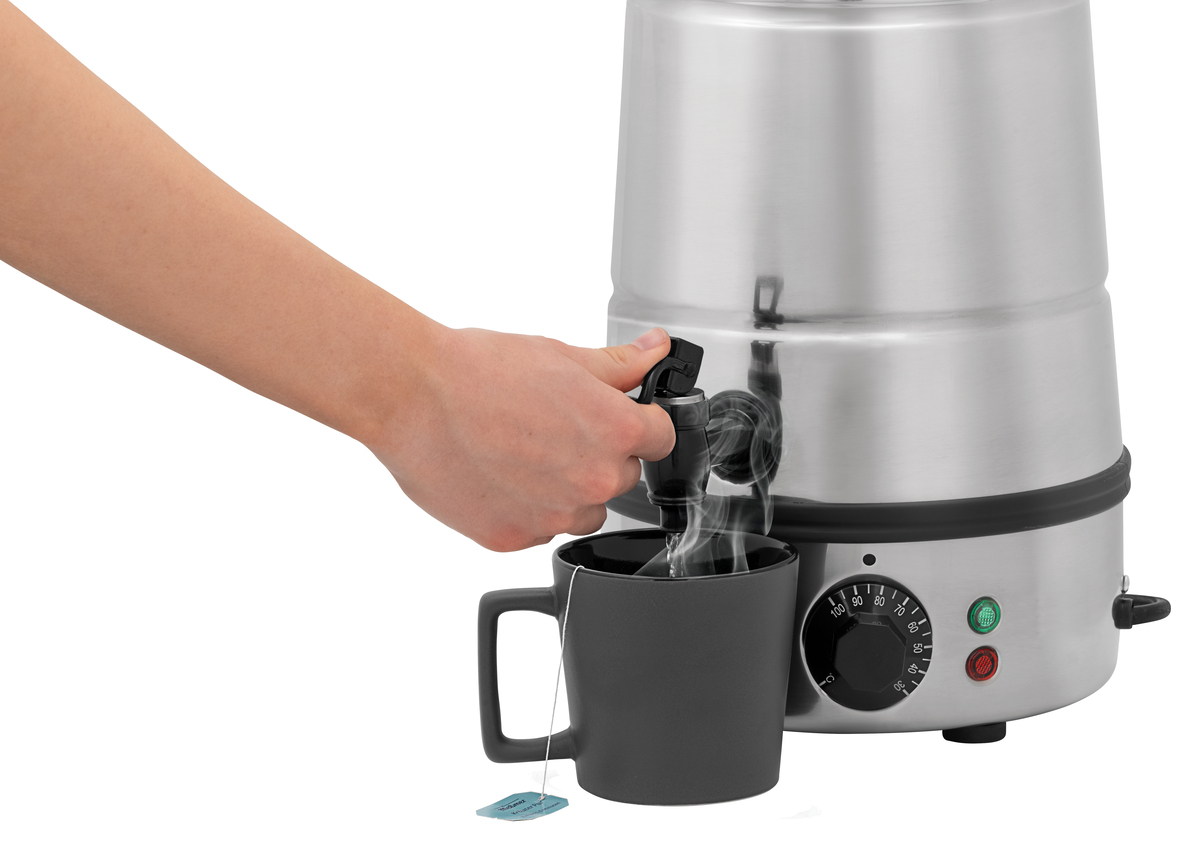 Płynnie regulowany termos do gorącej wody o pojemności 5 litrów zapewnia wodę o odpowiedniej temperaturze przez długi czas. Dzięki przyjaznemu dla użytkownika kranikowi można łatwo dozować żądaną wielkość porcji w dowolnym momencie.