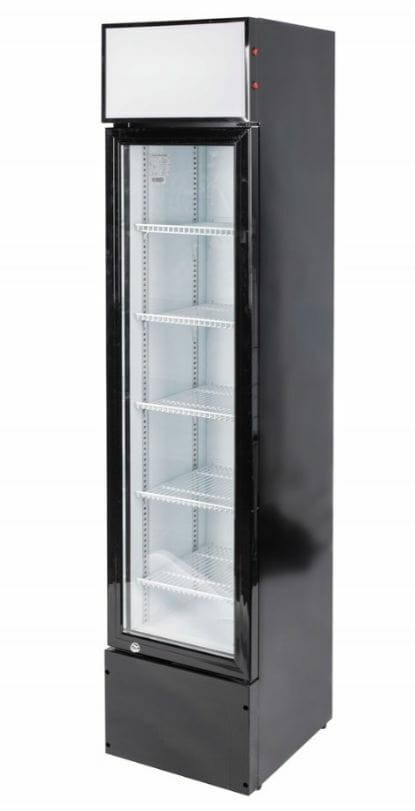 Wąska szafa chłodnicza, przeszklona slim 155L