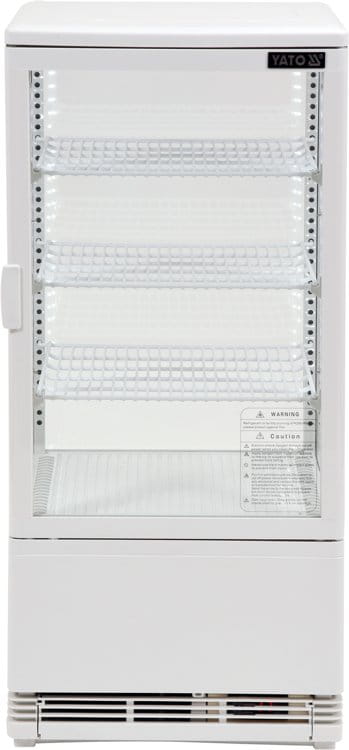 Witryna chłodnicza YATO wolnostojąca o pojemności 78L w kolorze białym o wymiarze 428x386x960mm.