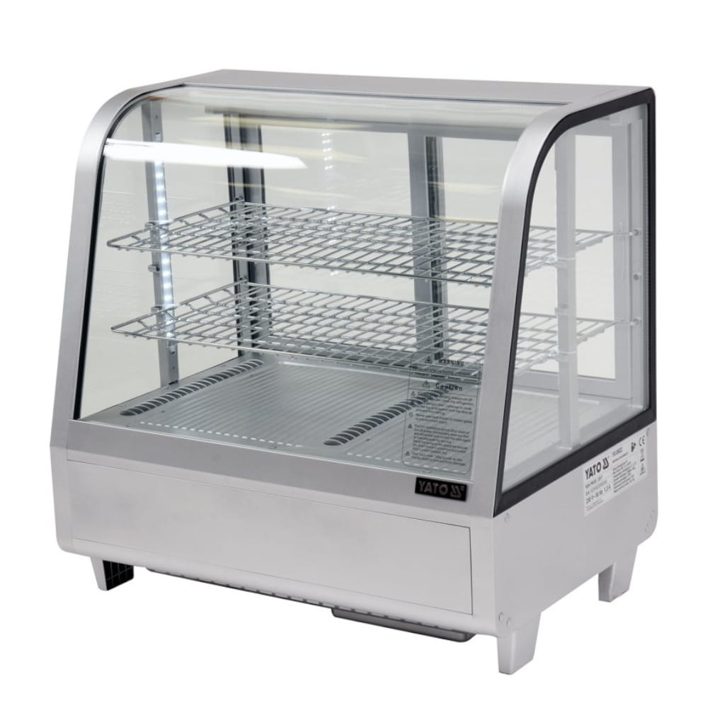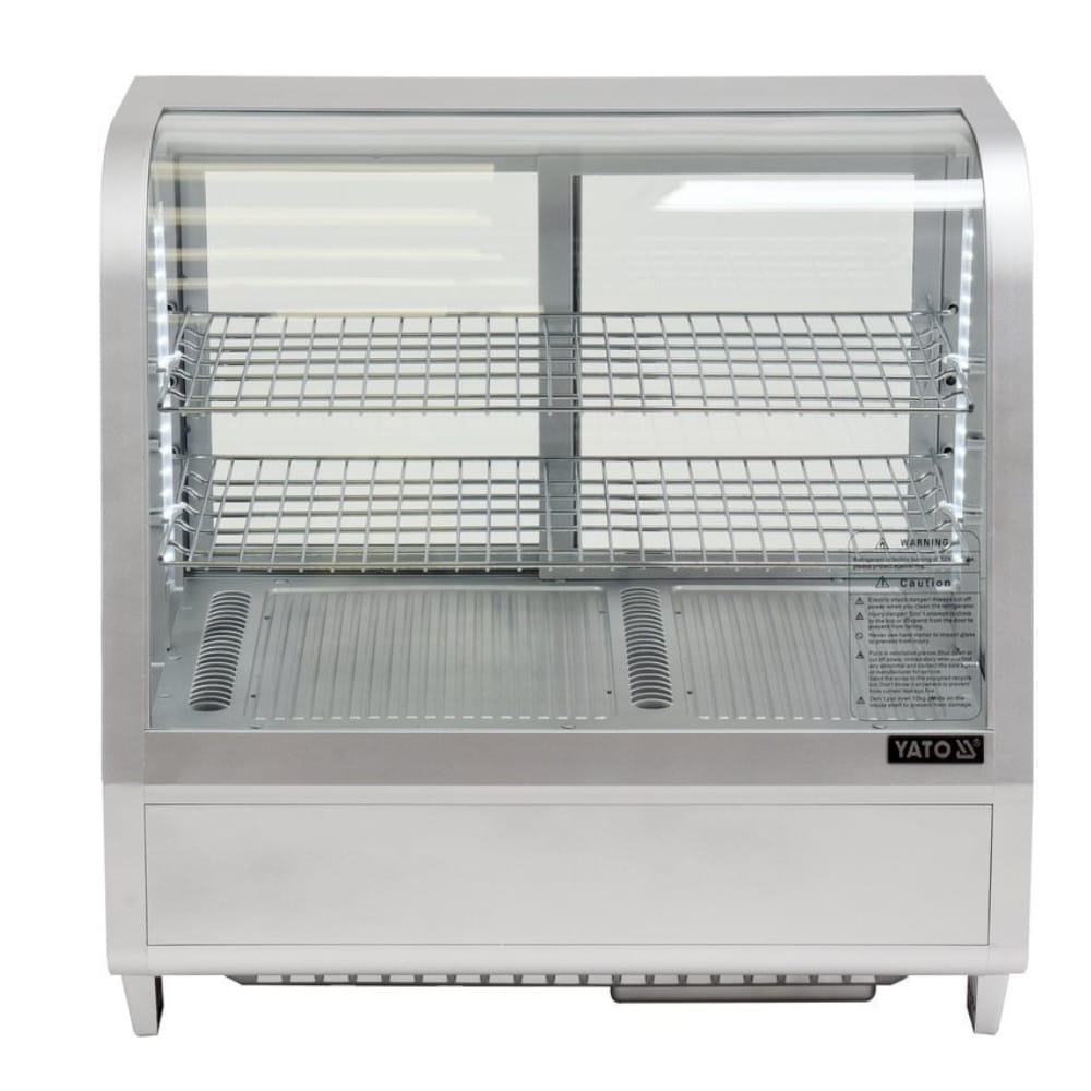 Witryna chłodnicza marki YATO przeznaczona jest do ekspozycji ciast, tortów, koktajli czy różnego rodzaju napojów. Nowoczesne wzornictwo połączone z wysoką jakością surowców powoduję, że witryna chłodnicza YATO doskonale prezentuje się na froncie we wszelkiego typu cukierniach, kawiarniach, restauracjach czy punktach handlowych. Dodatkowo zainstalowane oświetlenie LED eksponuje prezentowane potrawy w bardzo atrakcyjny sposób zachęcając klientów do ich wyboru.